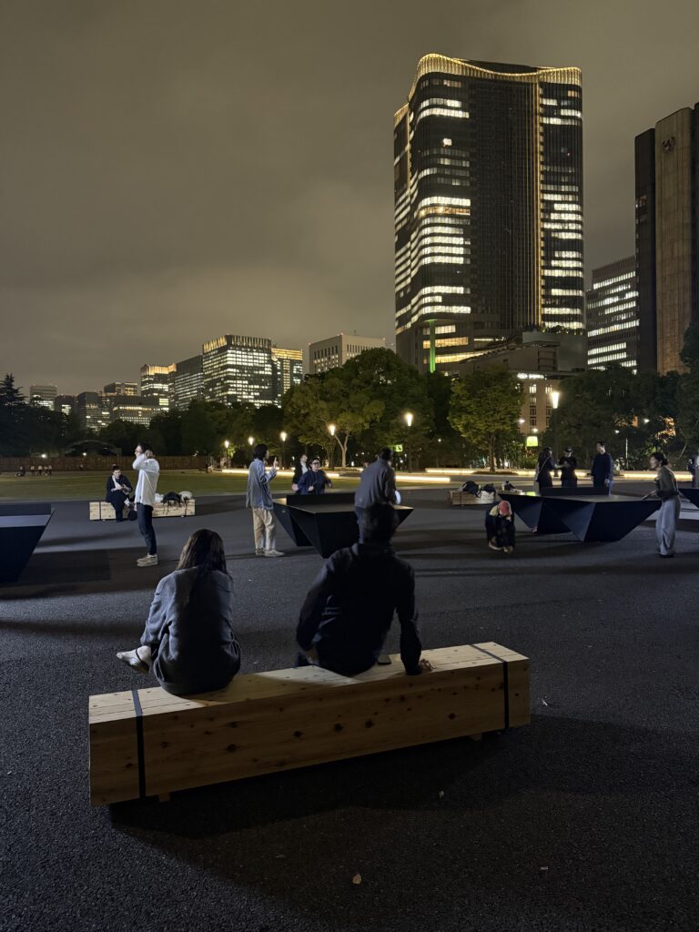 2022年のrooms PARKの会場でブースとして使われていた角材が、閉会とともにその役目を失い巡り巡って戻ってきたものをベンチとして再構成していた。