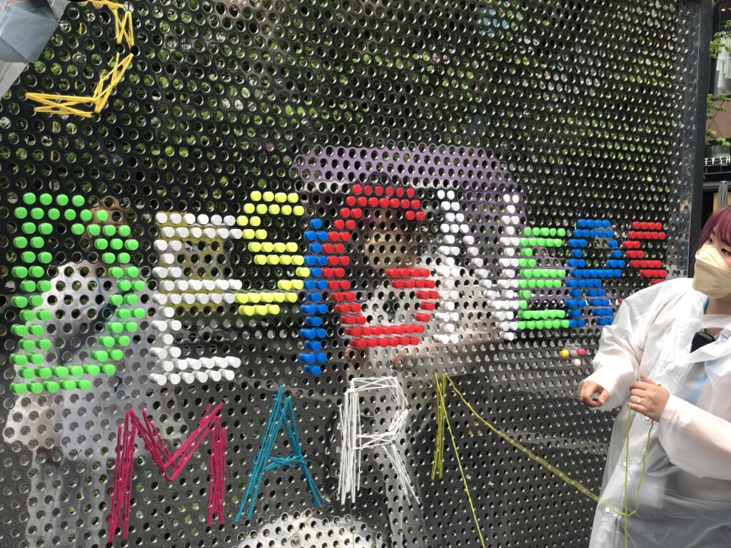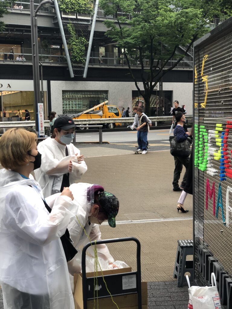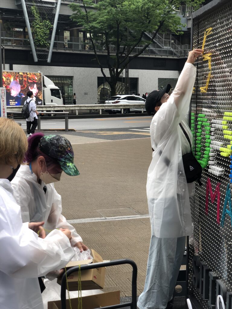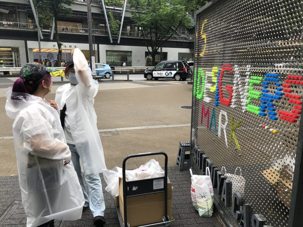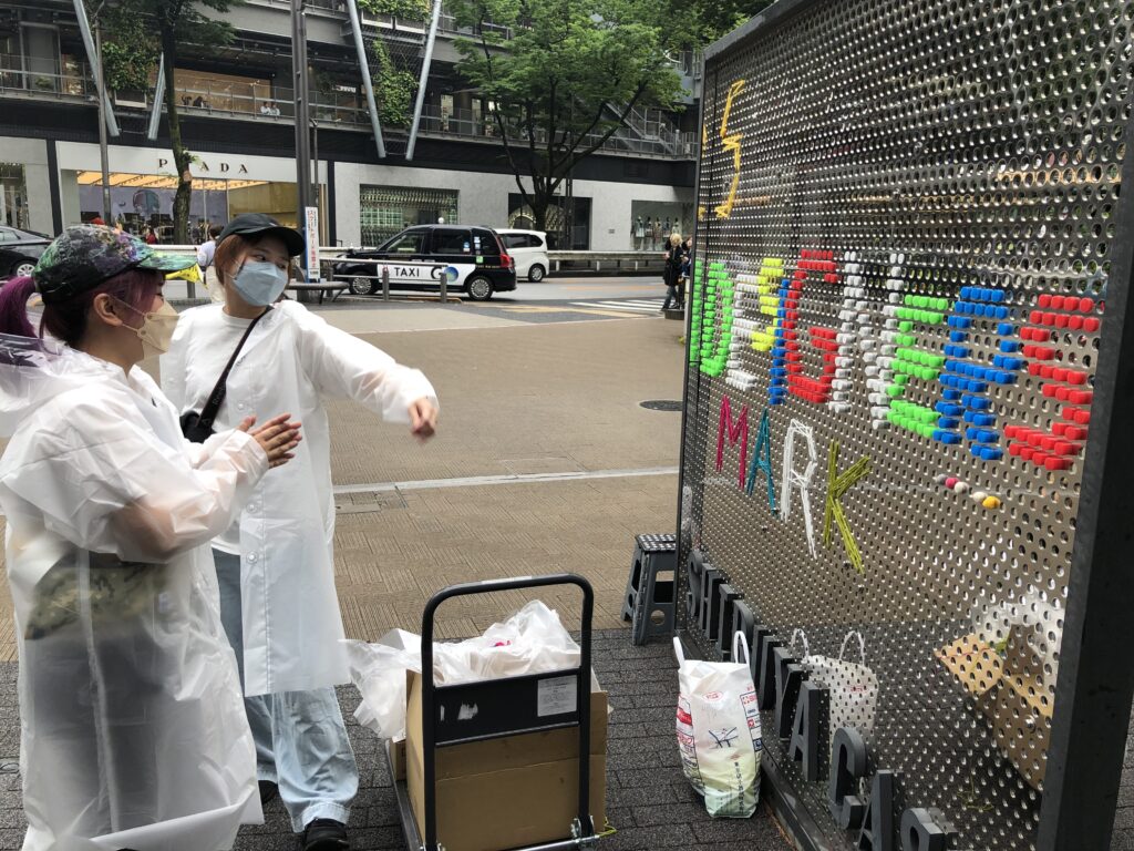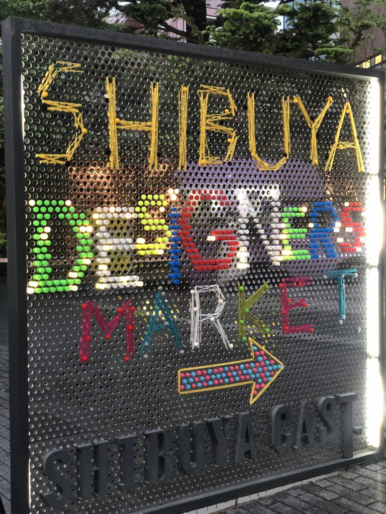 普段は店舗看板などがパンチング穴を利用してボルトで吊られているエントランスサインを、イベント(SHIBUYA DESIGNERS MARKET)のタイミングで塗り替えるプロジェクト。